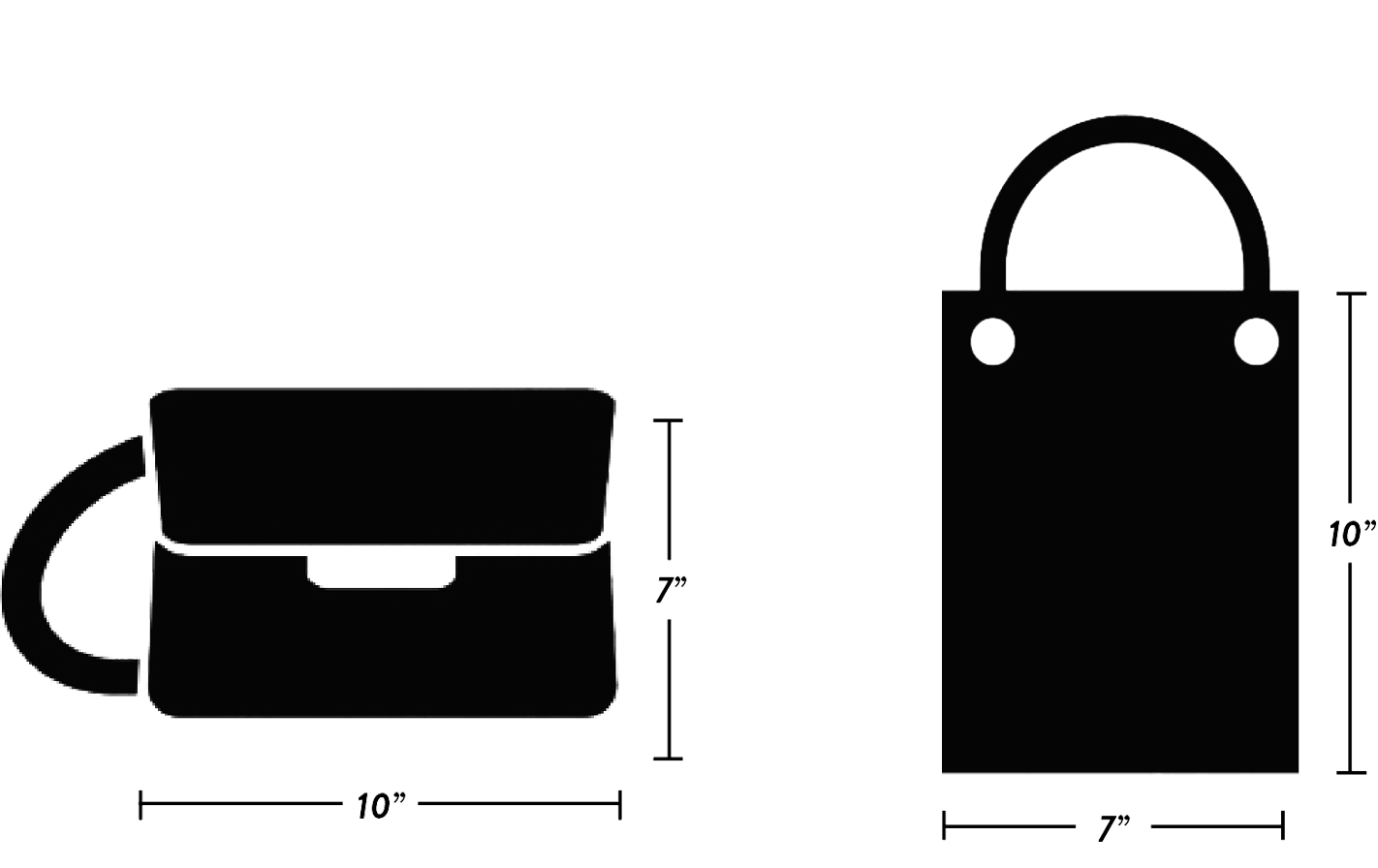 - ছোট্ট ব্যাগ- ৭x১০ এর চেয়ে বড় নয়।