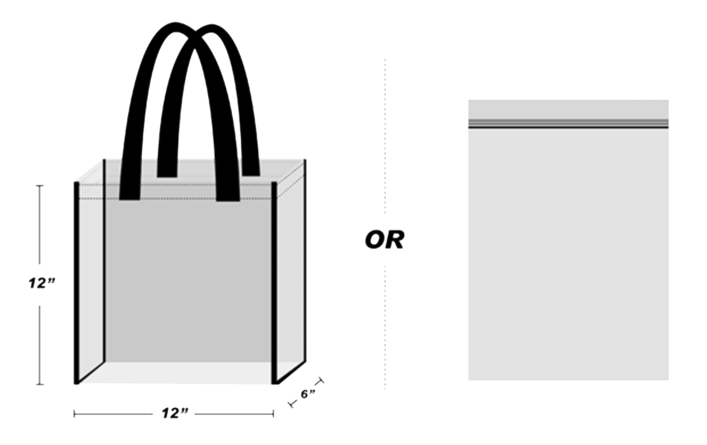 ব্যাগ পরিষ্কার প্লাস্টিকের, ভিনাইল বা পিভিসি এবং ১২ x ৬" x x ১২।