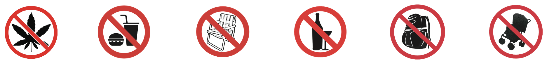 কিছু জিনিষও আছে, কিন্তু এগুলো শুধু সীমিত নয়: ব্যাগের চেয়ে বড় ব্যাগের ব্যাগ, জেট ব্যাগ, ফ্যানি প্যাক, ফিঞ্চ ব্যাগ, যেকোনো ধরনের ব্যাগ, কম্পিউটার ব্যাগ, ব্যাগ, ব্যাগ বা ব্যাগের ব্যাগের ব্যাগের চেয়ে আরও বড় ব্যাগ । সমর্থকরা আইনের চেয়ার নিয়ে আসতে পারবে না। কিন্তু অনুসন্ধানের জন্য কোন আইন নেই। ভেনু ম্যানেজমেন্ট যোগ করার এবং অতিথি, শিল্পী এবং কর্মীদের নিরাপত্তার জন্য উপরের নীতিটি মুছে ফেলা এবং সেগুলোকে ব্যাখ্যা করার অধিকার সংরক্ষণ করেছে।.